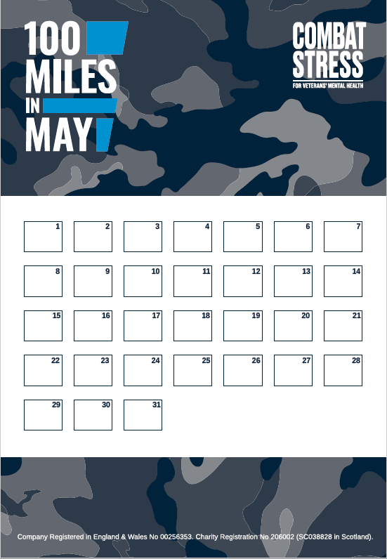 Share your fundraising page to spread the word! Get your family and friends to sponsor your challenge and raise vital funds in support of veterans’ mental health. Once you have raised your first £10 you’ll also receive your 100 Miles in May challenge T-shirt!