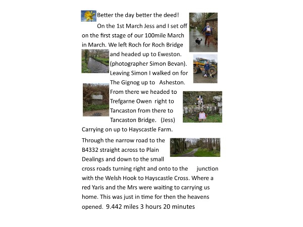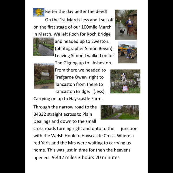 Raining again so double lined waterproofs on Jess at heel and off we go. Lets keep our fingers crossed for a drier March.Mark Shuttleworth Welsh Veteran Awards Volunteer of the Year