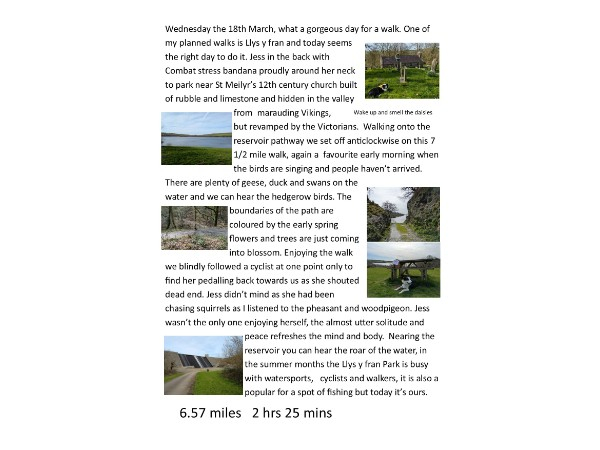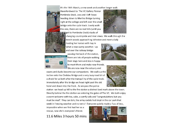 Two months after receiving the above award I was diagnosed with oesophageal cancer and underwent major surgery and extensive treatment during 2023/24 my last treatment was February 2025. I was determined that this was a setback and would not stop me doing what I felt was important. Last March, by walking 100 miles in the month. Jess (my dog) and I I raised over £2000 for Combat Stress and I thank all those who support me then. I support armed forces charities locally and nationally because I know the vital work they do. I am a board member of the VC Gallery with bases in Haverfordwest and Pembroke Dock, supporting the health and wellbeing of both veteran and community members. For over 6 years I worked as a volunteer caseworker for Ssafa. Through this work and experience I have become more and more aware of the contribution Combat Stress makes in supporting the mental health of veteran members of the armed forces. My intention is to walk another 100 miles this March to raise vital funds for life-changing mental health treatment for veterans.